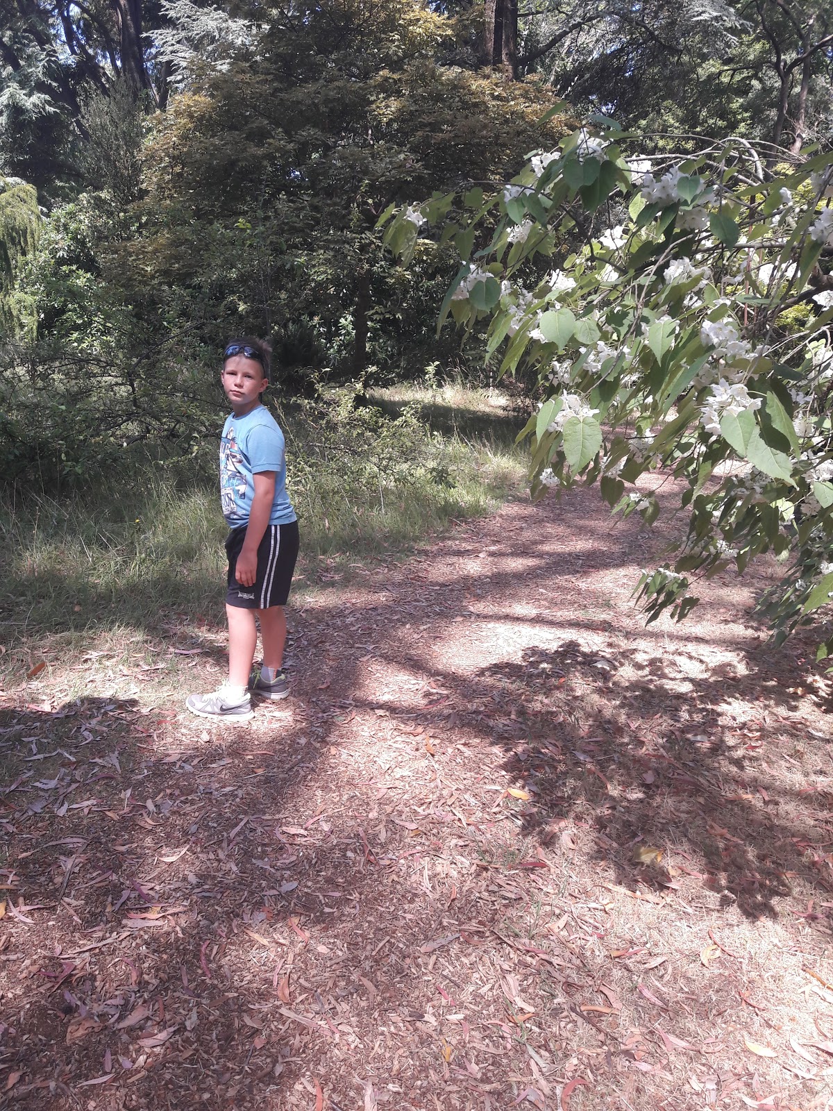 Pak jsme decentně pojedli z přinesených zásob a přesunuli jsme se do Mountain Ushers Garden na Tree trail. Jsem si myslel, bláhově, že Tree trail bude nějaká adrenalinová cesta v korunách stromů, ale ukázalo se, že to je prostě zahrada, kde si Mountain Ušáci už od začátku minulého století pěstujou stromy z celého světa. Naučili jsme se několik důležitých slovíček: